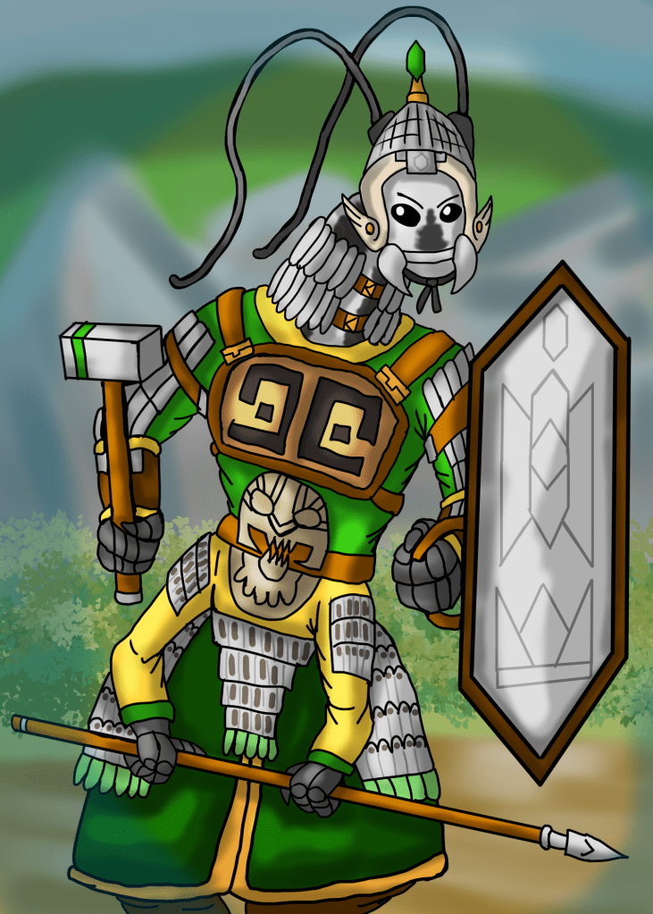 Welcome to a whole new year of 2026! I will start off with my progress for January 2026. I have been getting much better at my mental health and I have been working on my world and its project especially the games like Highborne Conquest and Highborne Legions. Hopefully you will like this month batch of artworks! It includes one of many fantasy species called Elypions, which are beetlemen, few arts of flags, which is a type of card in one of my games project, and few new concept arts for generic characters for highborne such as the bloodbrewer and Xạ Kỵ aka the Kinhnami Horse Archer (both variations of them – light armor and heavy armor).